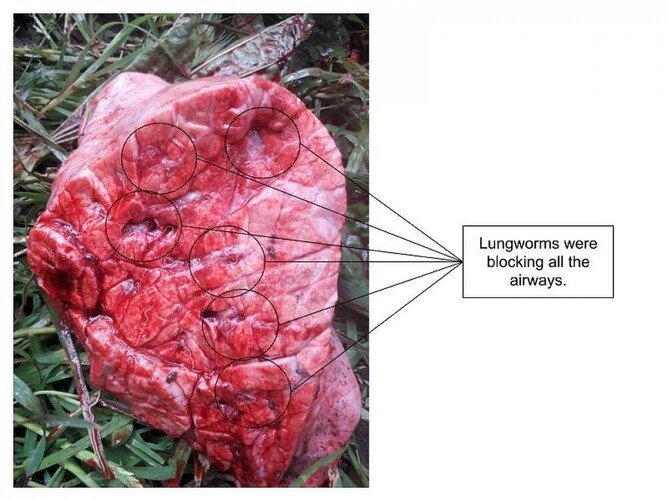 - Several deaths in the last couple of days - post mortem exam revealed signs of chronic lungworm infestation, but few lungworms present due to drenching.