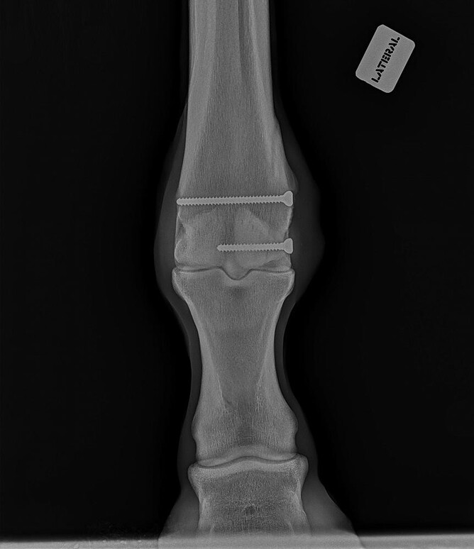 Figure 1 shows what can happen to a repair on anaesthetic recovery. If they struggle and flail, the repaired leg can be pulled apart or get damaged. In an effort to minimise the issues with anaesthetic recovery; many leg fractures are performed standing using sedation and local anaesthesia to numb the area. While this is technically more difficult, horses do not have to recover from anaesthesia.