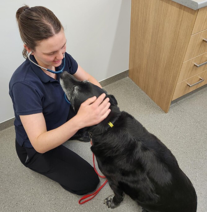 Twelve year old Dumper is a labrador/huntaway cross, who enjoyed his recent senior dog health check with VetSouth small animal vet, Elin Clapton.