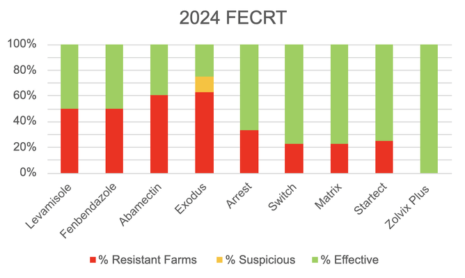 Our recent faecal egg count reduction tests (FECRT) results show continuing parasite resistance to triple combination drenches and growing resistance to dual-actives.