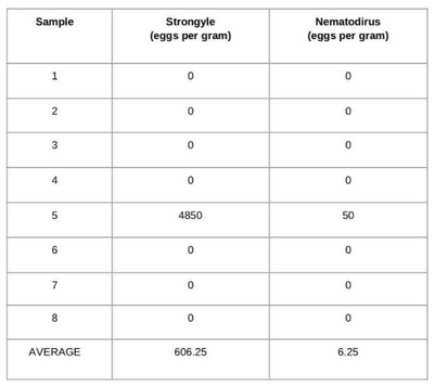 In clinic, we do have the ability to test individual faecal samples or composite faecal samples. However, our preference is individual samples, especially for these sorts of drench check FECs.