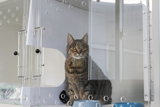 After treatment, cats stay in our dedicated feline treatment ward for a total of eleven days, where they are cared for and closely monitored by our specialist radiation medicine team of vets and vet nurses. Cats are admitted on Monday, receive treatment on Tuesday, and return home the following Friday.