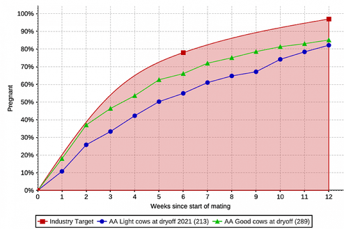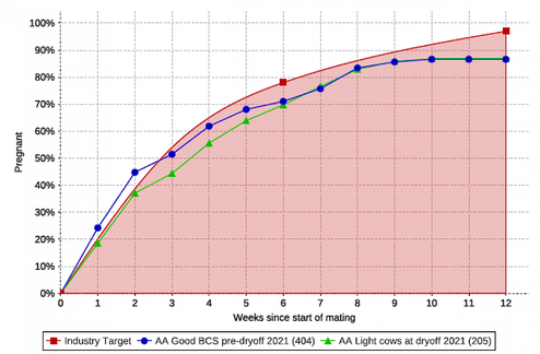 - The best ‘Not-in-calf rate’ was 7%, with three farms achieving this with a mating length of 11 weeks or less.