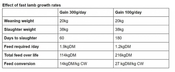Lambs that grow faster will reach slaughter weights sooner, and /or be heavier at the weaning draft (see table below). To get lambs growing at 300-400g/day they need: